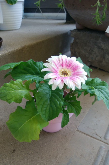 ガーベラと比べて鉢が大きくて土がいっぱい入ってるから、水をあげた後の鉢がすごく重くなって、やっぱり水は重いんだなぁって時々思う。土乾いてるととっても軽い。