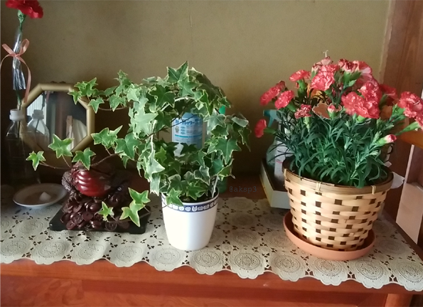 ・ちょうどいい感じの高さの靴箱のうえに置いたせいで人と接触してたのかなんなのか、ツルの先の若い葉が茶色くしんなりしてた?