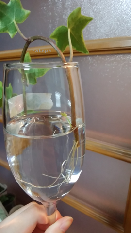 シャンパングラスの水挿しも毎日目に見えるくらい根が伸びてます。ツタは伸びないけど。