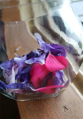 その後も散った花をちょこちょこ拾って乾燥させて追加してたらビン半分くらいになりました。