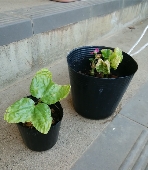 水が足りなくなると若いツルと葉が柔らかくなってくったりしてくる。