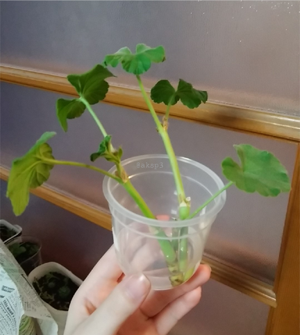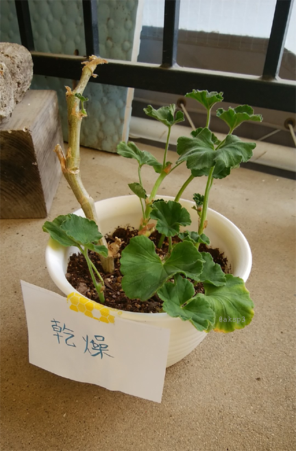 拾った日はやっていられなくて、まあ明日まだ元気そうだったら挿してみよう、でひなたにほっぽってあったんだけど、偶然にもゼラニウムはちょっと乾燥させたほうがいいとか。