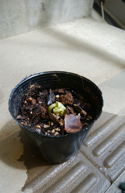 4粒中3粒発芽。水に浸して外側のカラにヒビが入ってたやつは芽が出た。