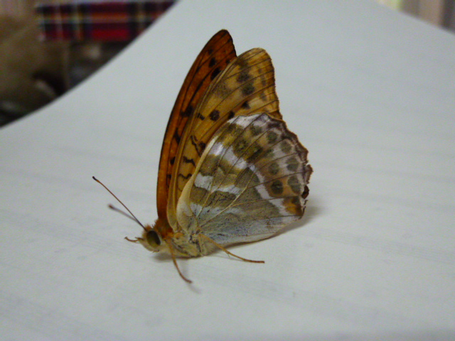 ベランダでお亡くなりになってた黄褐色~橙の蝶。