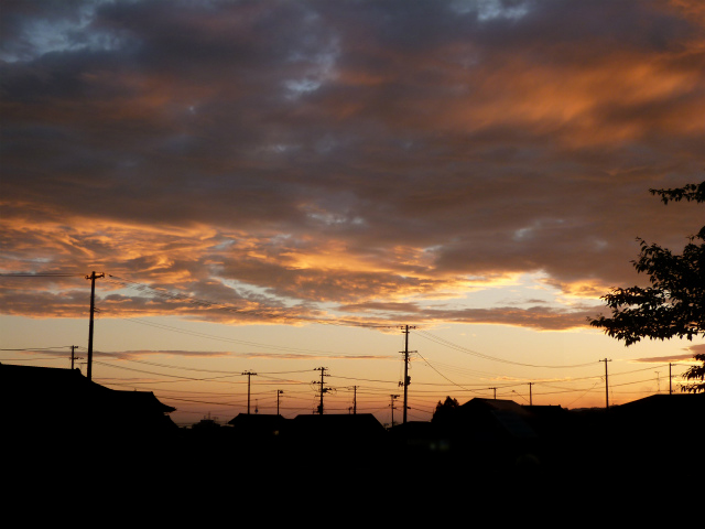町並みが映ってる空のは朝焼け。すごかった。本当はもっとピンクっぽい色もあったんだけど映らなくて残念。