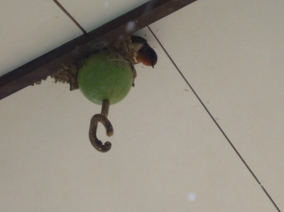 やたら庭に飛んでると思ってたら、ベランダの屋根に巣がありました。